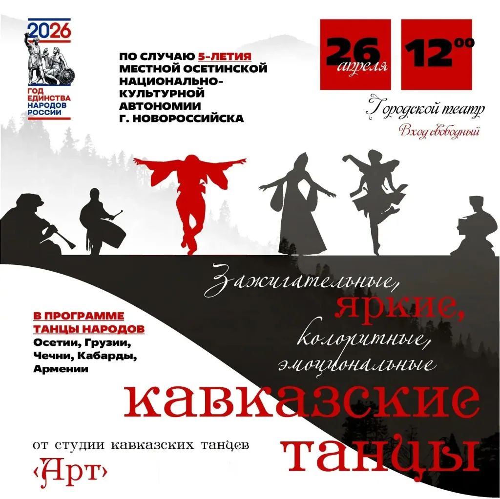 Уважаемые жители и гости города-героя Новороссийска! Приглашаем вас 26 апреля в 12:00 в городской театр, где состоится большое праздничное мероприятие, приуроченное к празднованию 5-летия местной осетинской национально-культурной автономии города-героя Новороссийска.