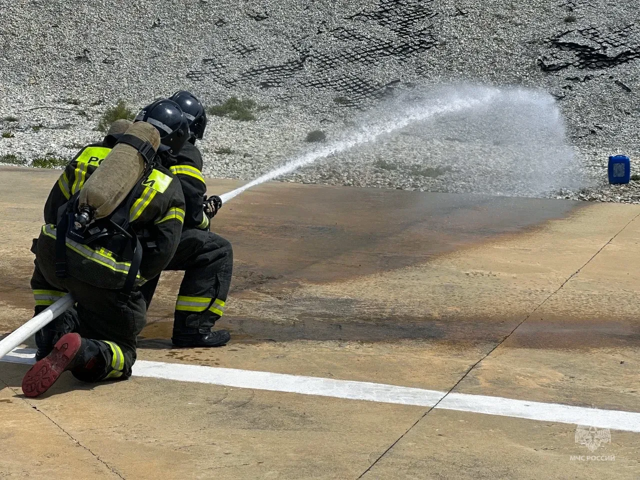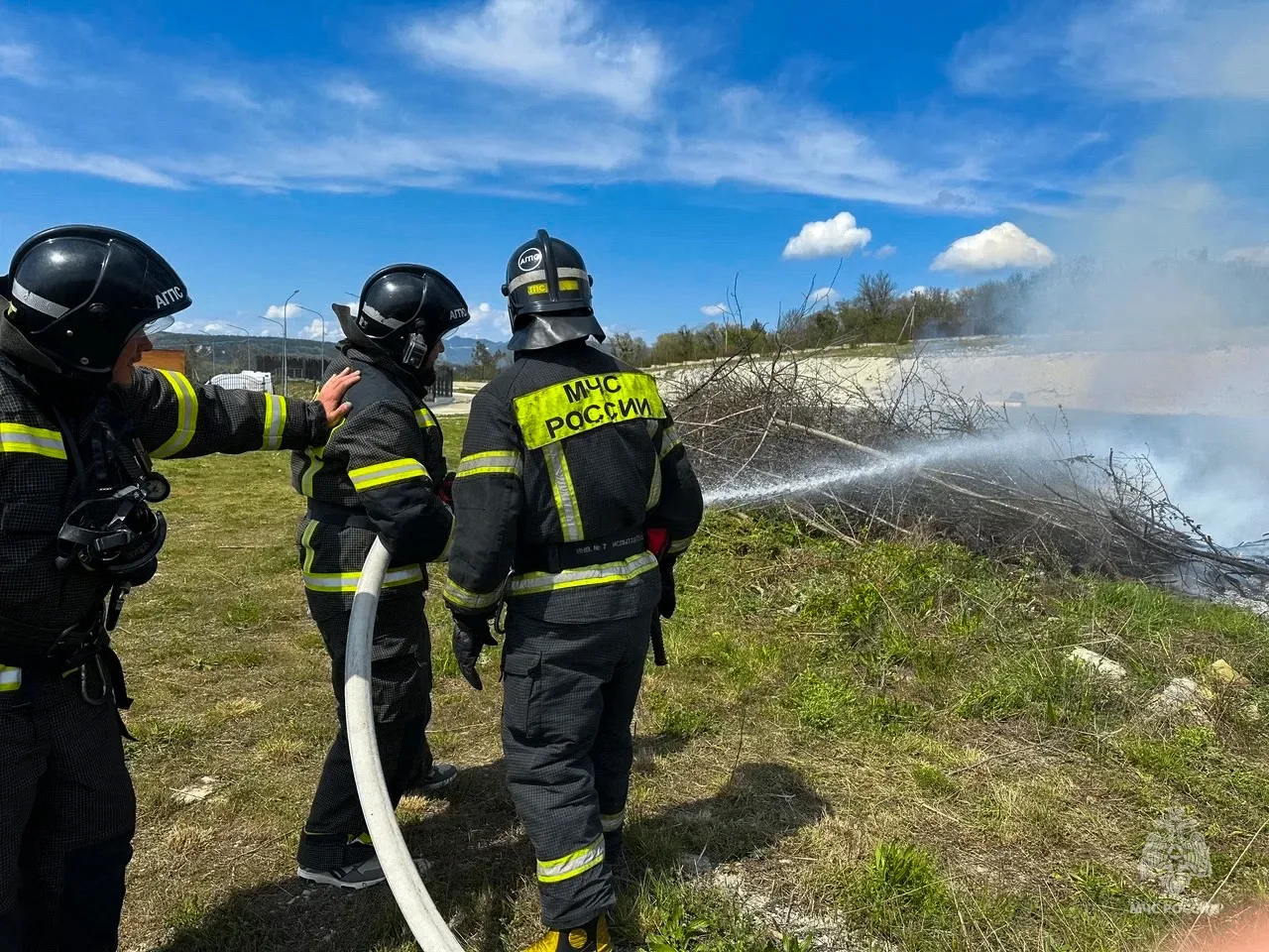 Завершающим испытанием для участников пресс-тура стала ликвидация ландшафтного пожара. Журналисты услышали сигнал тревоги, прошли полный цикл сбора, заняли места в пожарно-спасательном автомобиле и выехали на место условного пожара, после чего участники самостоятельно развернули рукавные линии и полностью ликвидировали возгорание.