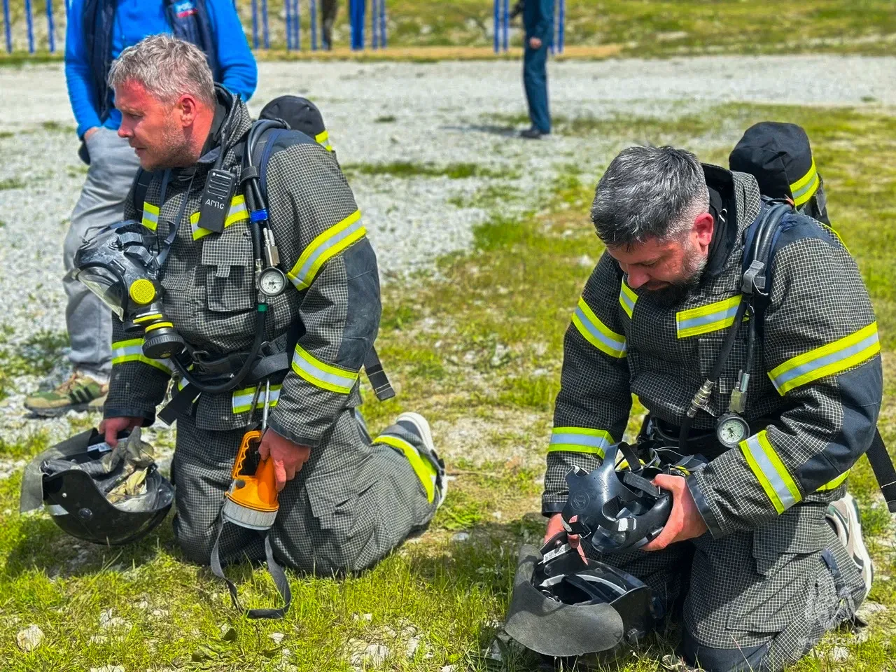 Первое испытание развернулось в учебно-тренировочном комплексе «ГРОТ». Участники в составе звена газодымозащитной службы преодолевали задымлённый лабиринт: ограниченная видимость, замкнутое пространство, крики «пострадавших».