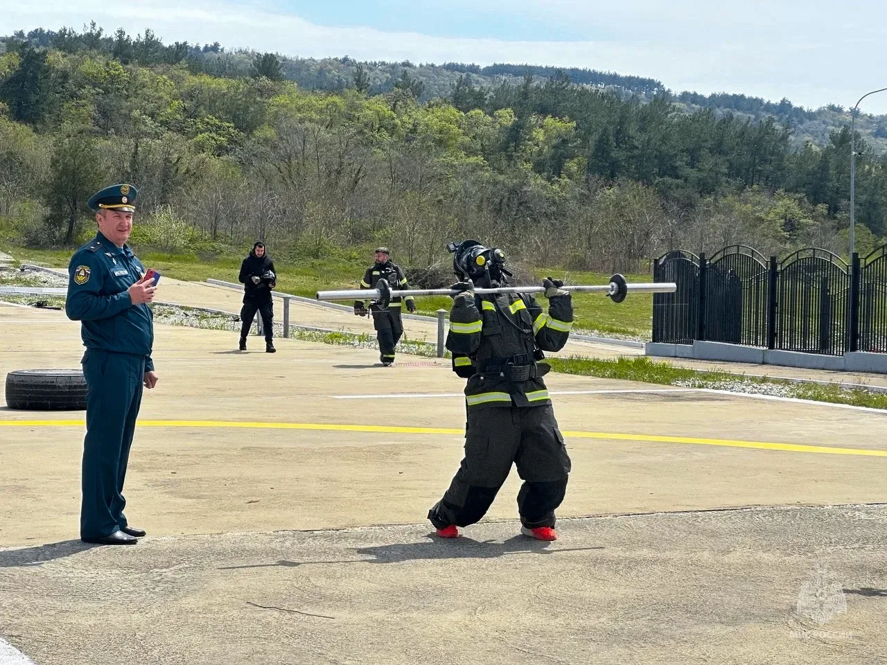 Вторым испытанием стал «пожарный кроссфит». На дистанции в 100 метров участникам в полном обмундировании необходимо было поднять штангу, перенести пожарные рукава, выполнить кантовку тяжелого колеса и нанести несколько ударов кувалдой по покрышке, а после поразить мишень водой из пожарного ствола.