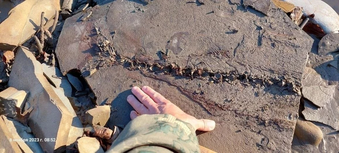 Отпечаток древней рыбы подарили Апшеронскому историко-краеведческому музею. Даритель - житель города Хадыженска Сергей Лукьяшко нашел его на берегу реки Пшехи 8 ноября 2023 года.