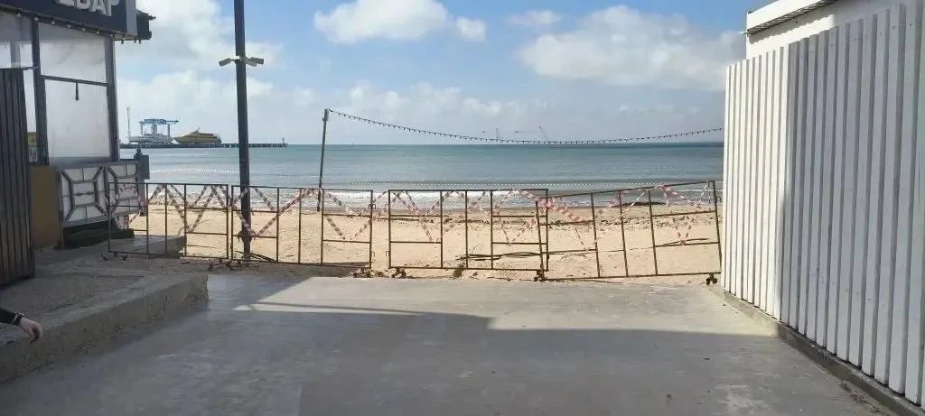 Участок пляжа, на котором проводятся работы по отсыпке чистого слоя песка, огорожены в целях безопасности