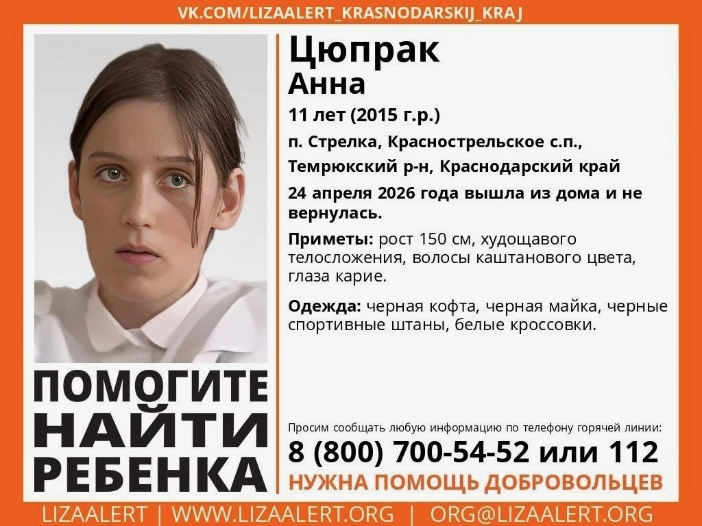 Вторые сутки ищут 11-летнюю девочку, которая вышла из дома в Темрюкском районе и не вернулась.
