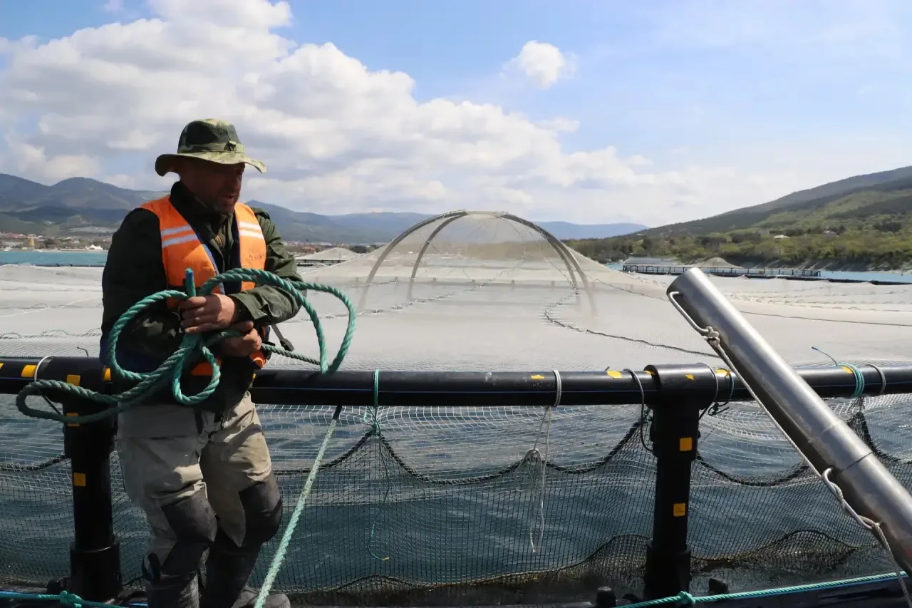 На рыбоводном хозяйстве в селе Кабардинка применяют технологию, которой больше нет нигде на Чёрном море. Форель и мидии выращивают вместе: мидии фильтруют порядка 200 тысяч кубометров воды в сутки, и форель растёт быстрее в естественных условиях.