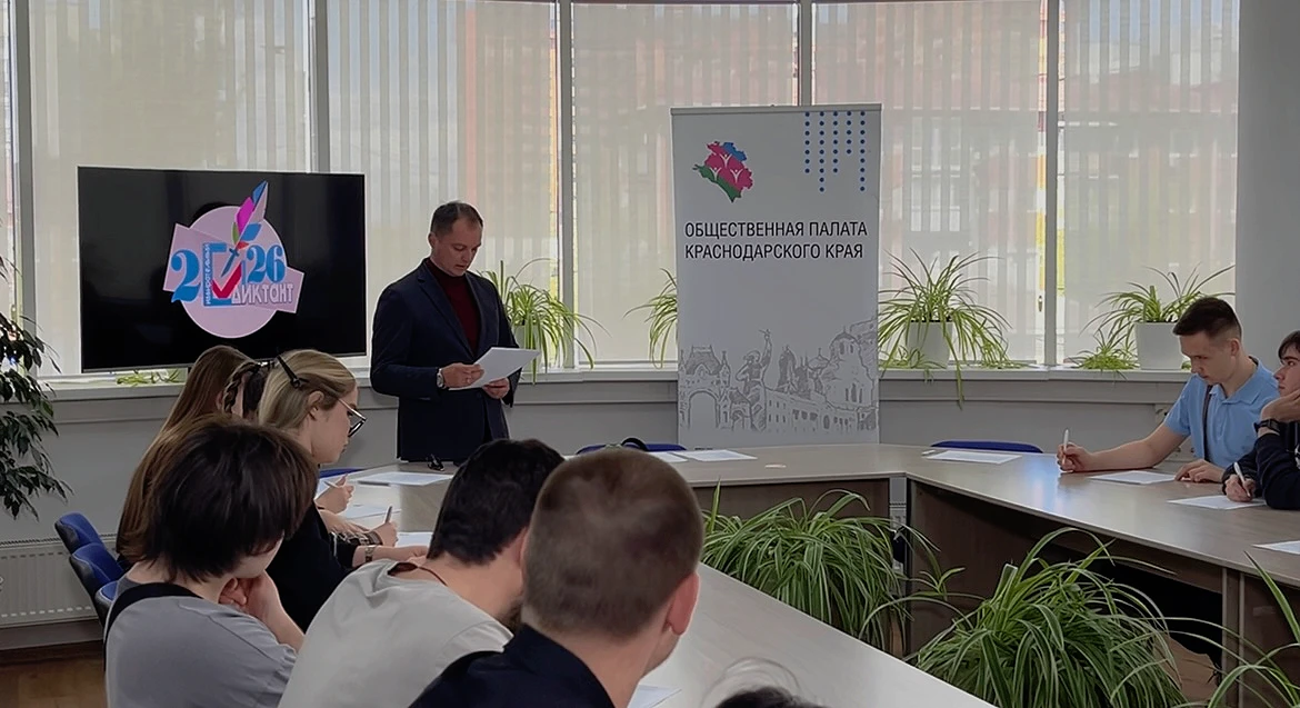 В Общественной палате Краснодарского края также была организована площадка Избирательного диктанта, модератором выступил член Общественной палаты края Антон Коновалов.