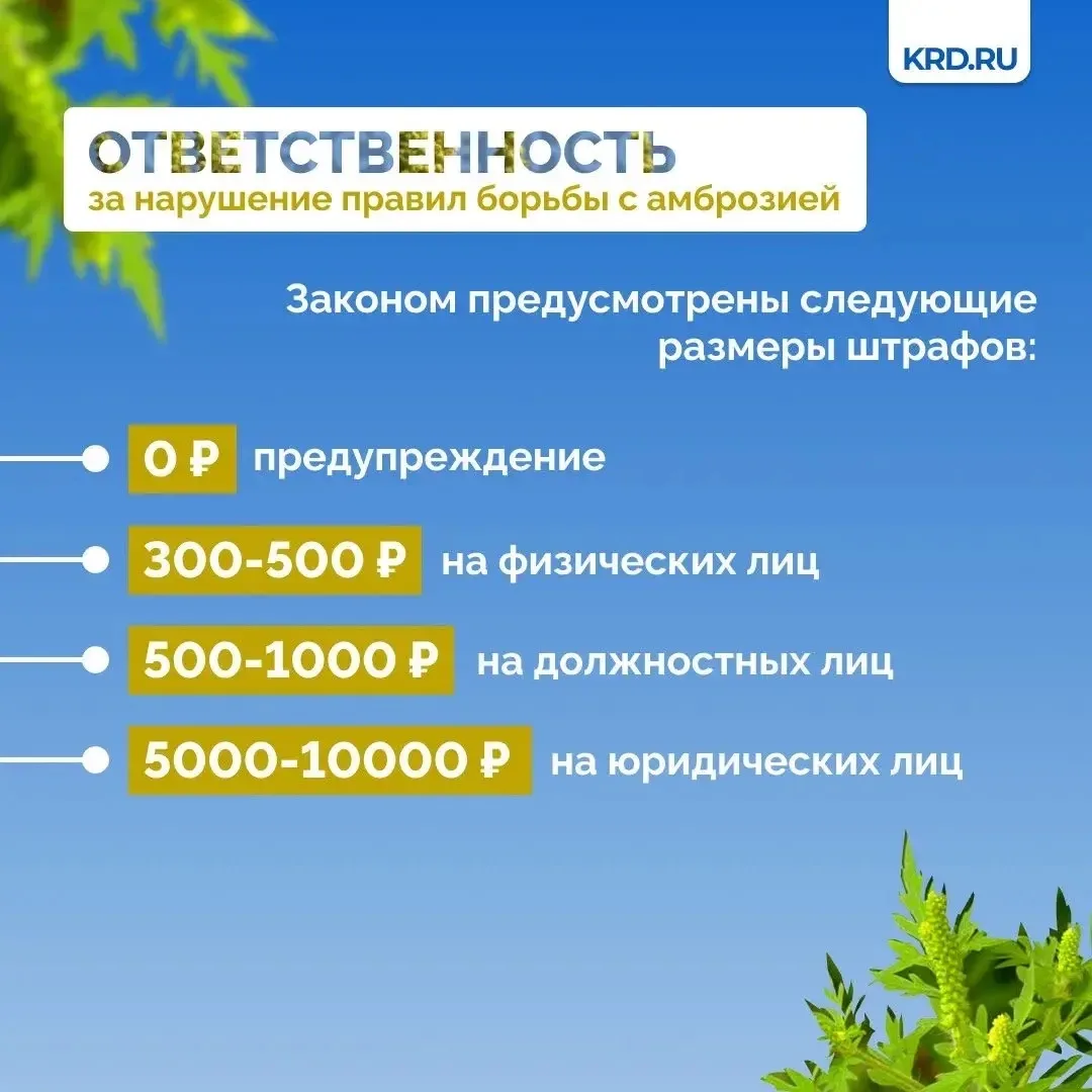 Установившаяся тёплая погода является благоприятными условиями для роста карантинной растительности. Как бороться с амброзией, куда сообщить о необходимости покоса и какая ответственность грозит за несоблюдение правил борьбы с сорняком – всё это рассказали в наших карточках.