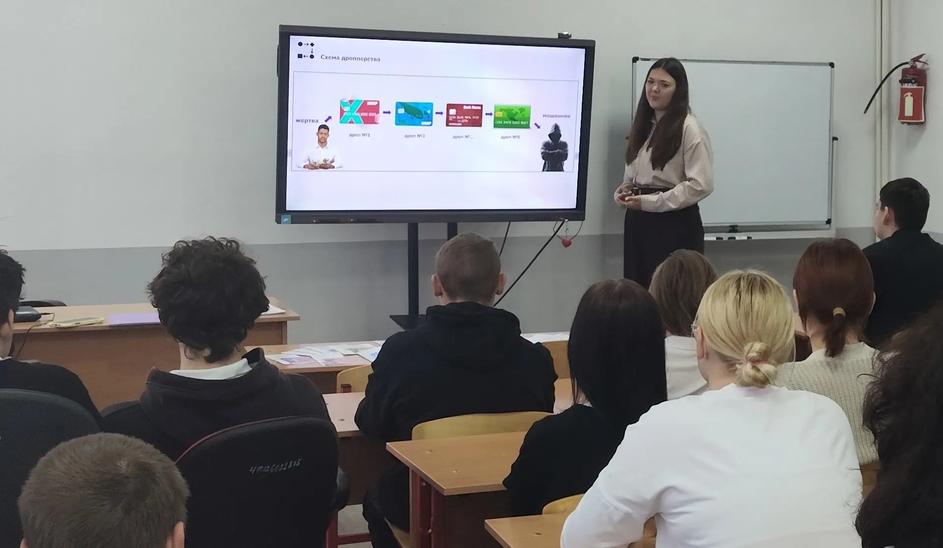 Также была затронута очень важная и актуальная тема финансового мошенничества и дропперства. Учащимся рассказали о популярных схемах обмана, уголовной ответственности и о том, как не стать соучастником преступления.