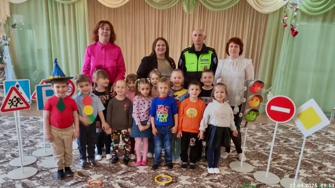 В рамках «Декады дорожной безопасности детей» старший инспектор ДПС Сергей Тюстин совместно с воспитателями Детского сада № 28 п. Советский провели профилактическое мероприятие «Путешествие в страну Светофории»