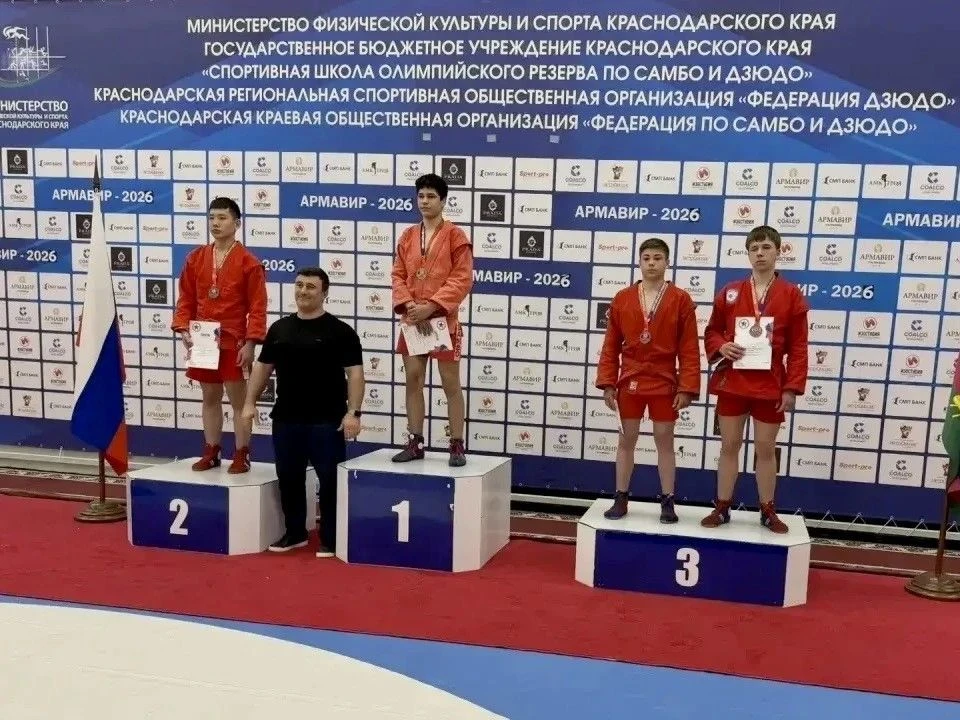 25 апреля в Армавире завершилось первенство Южного Федерального округа России по борьбе самбо среди юношей и девушек 12–14 лет (2012–2014 г.р.). Ейский спортсмен Ярослав Протопопов одержал уверенную победу в весовой категории 71кг! Он получил путёвку на Первенство России, которое пройдет с 12 по 14 июня 2026 года в Уфе!