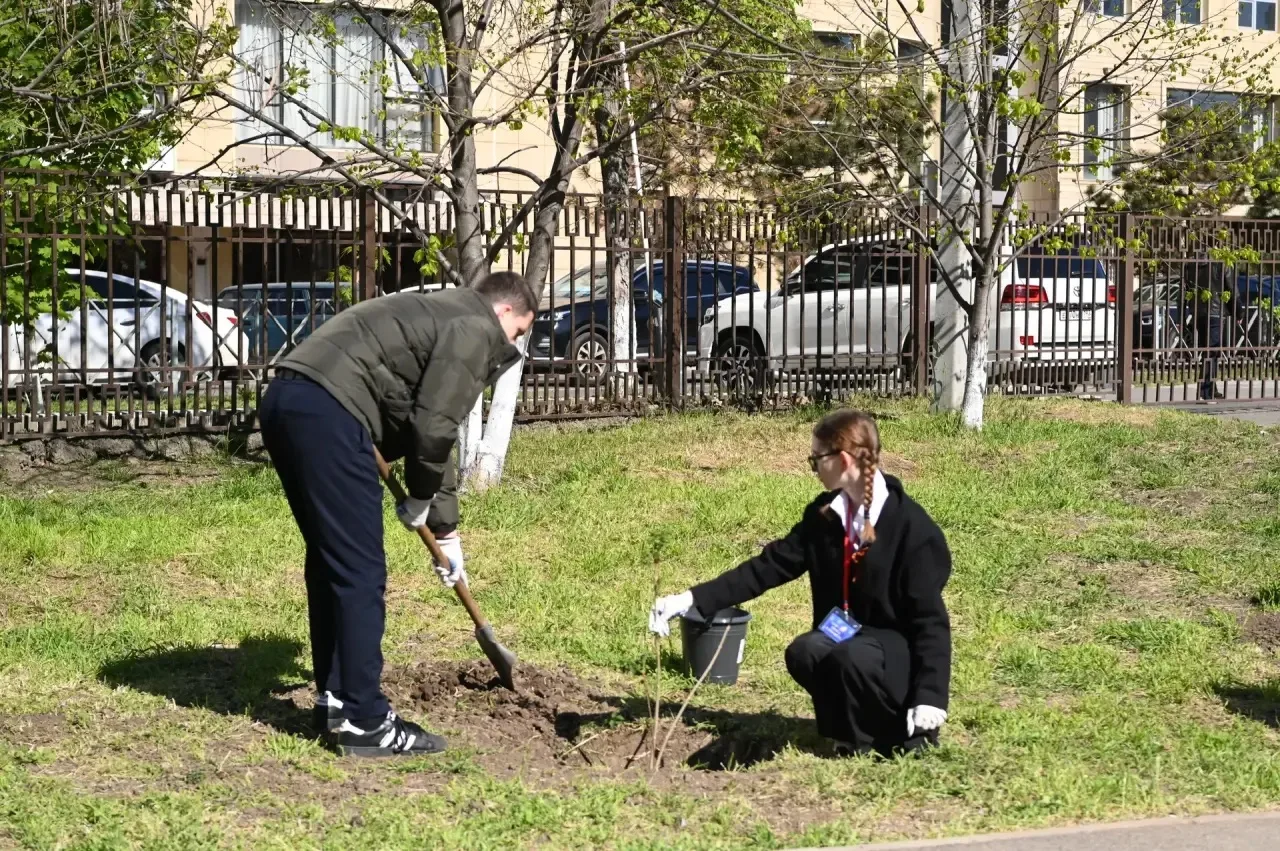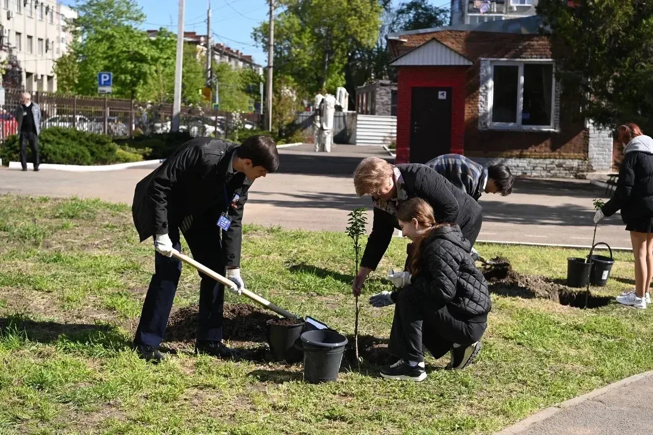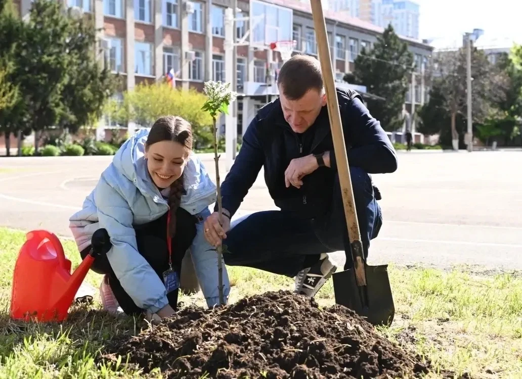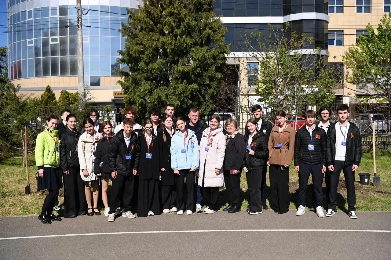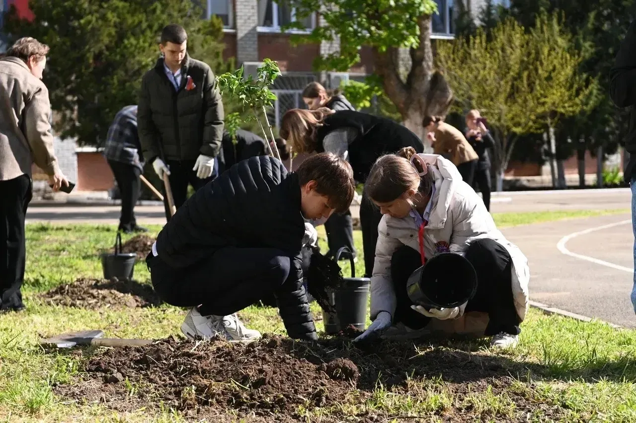 В Краснодаре глава города и школьники высадили сирень в рамках акции ко Дню Победы