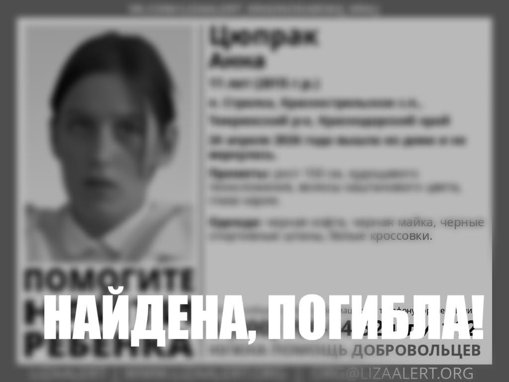 11-летнюю школьницу из Темрюкского района нашли погибшей. Девочку искали с 24 апреля. В тот день она вышла на прогулку с подругами в поселке Стрелка, но домой так и не вернулась.