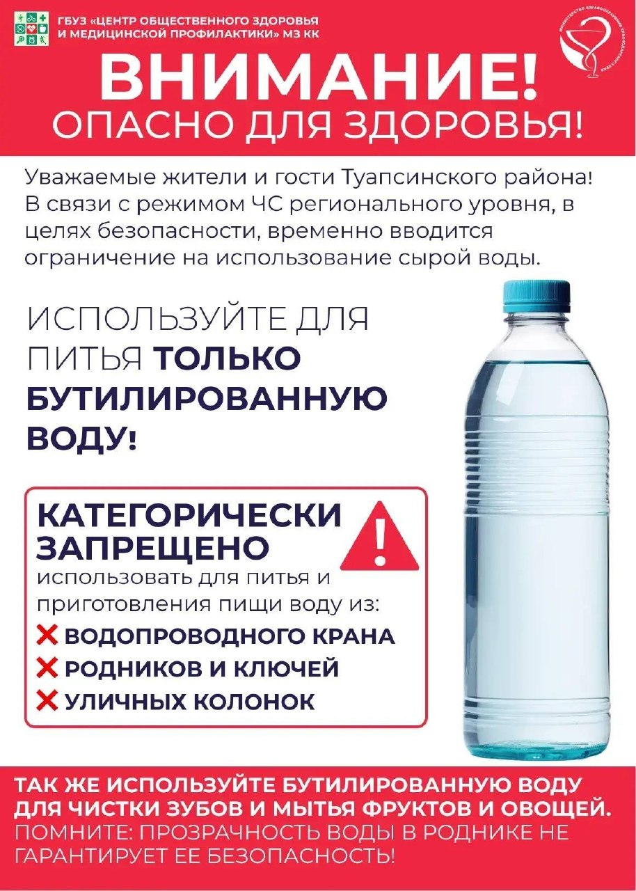 Как сообщили в Минздраве края, ограничения носят превентивный характер. Пить пока можно лишь бутилированную воду. Однако директор МУП «ЖКХ города Туапсе» заявил СМИ, что водопроводная вода в Туапсе соответствует нормам.