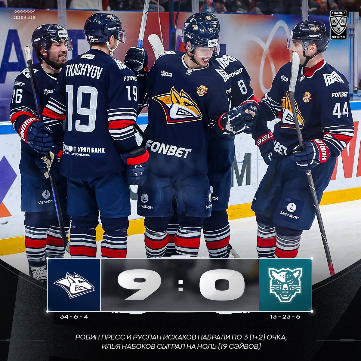 Магнитогорский «Металлург» обыграл «Сочи» со счетом 9:0 в домашнем матче регулярного чемпионата «Фонбет» — КХЛ.