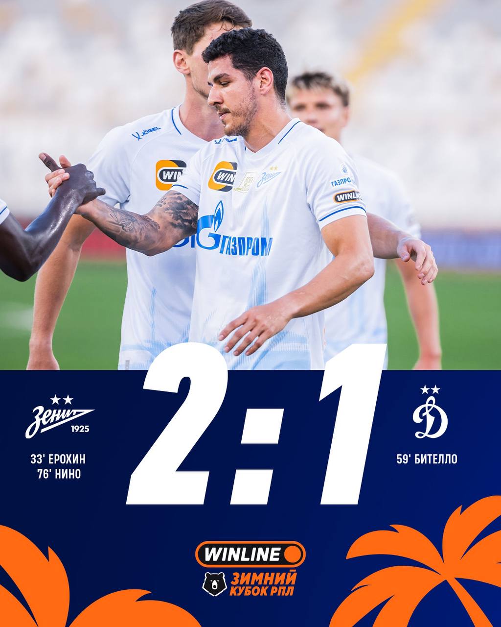 Петербургский «Зенит» успешно начал защиту титула победителя Зимнего Кубка РПЛ, одержав победу над московским «Динамо» со счетом 2:1 в матче открытия турнира.