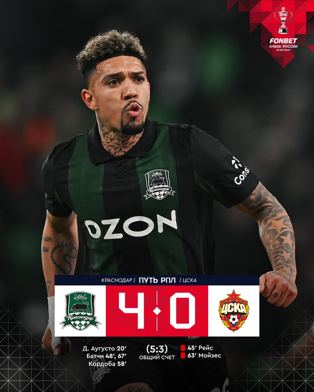 «Краснодар» разгромил ЦСКА и вышел в финал Кубка России в «пути РПЛ»